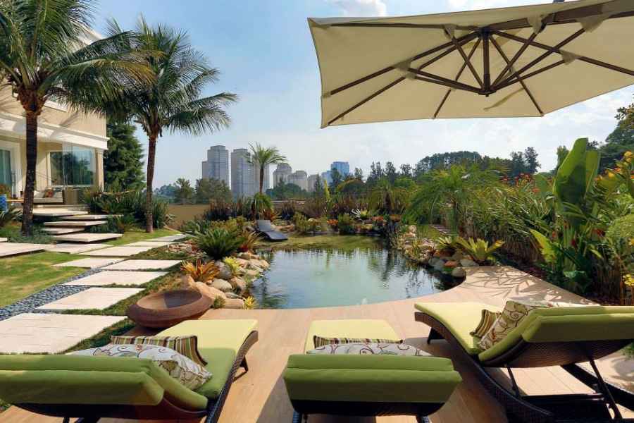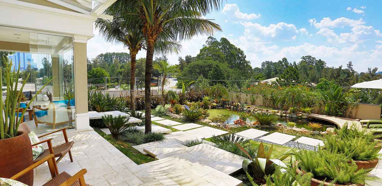 Projetos que propõem melhor aproveitamento do terreno e edificação com integração total com a natureza, proporcionando belos jardins e áreas externas de lazer, valorizando o estilo arquitetônico, a beleza contemplativa da natureza e os benefícios da Biofilia.